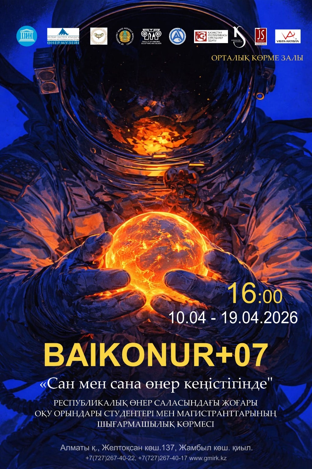 2026 жылдың 10 сәуір күні, сағат 16:00-де Алматы қаласындағы Әбілхан Қастеев атындағы ҚР Ұлттық өнер музейіне қарасты Орталық көрме залында «BAIKONUR+07 –  Сан мен сана өнер кеңістігінде» атты көрменің салтанатты ашылуы өтеді.