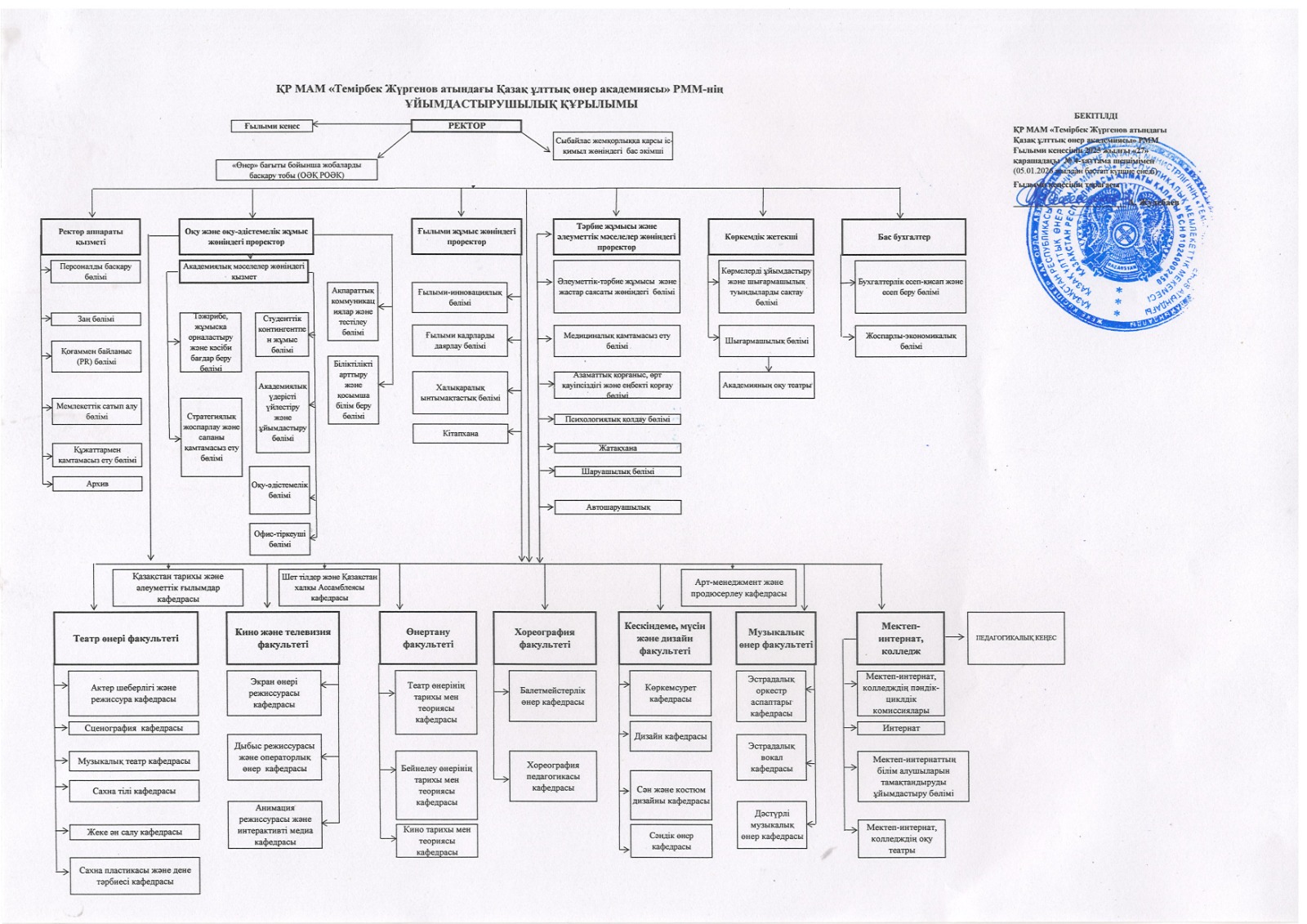 - ҚР МАМ “Темірбек Жүргенов атындағы Қазақ ұлттық өнер академиясы” РММ-нің ұйымдастырушылық құрылымы