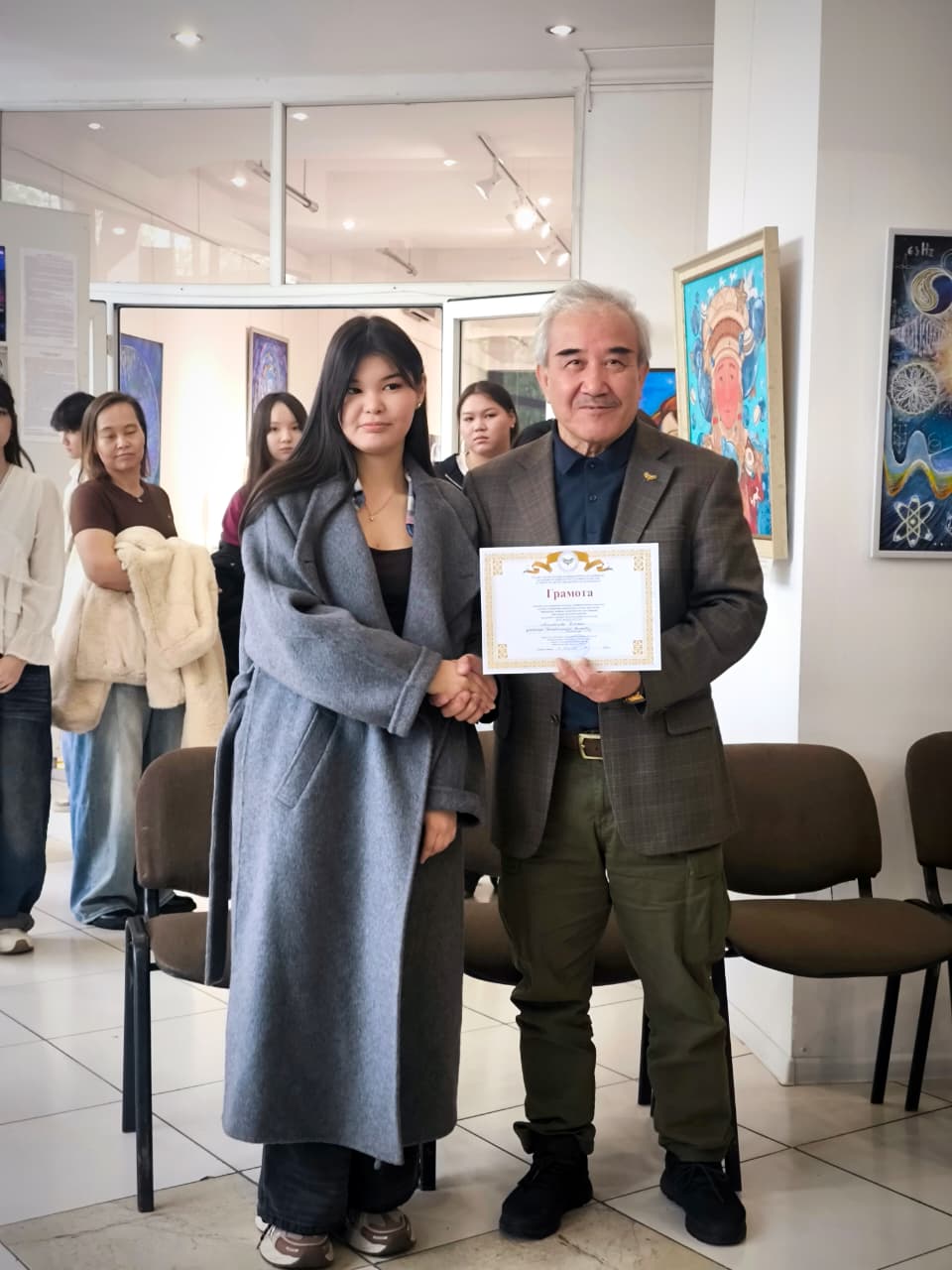 ҚР Суретшілер одағының төрағасы, Қазақстанның еңбек сіңірген қайраткері Өмірбек Жұбаниязов – студенттерге бұндай жобалар үлкен мүмкіндіктер беретінін алға тартып, жоба жетекшісі Болат Сырлашұлына табыстар тіледі.