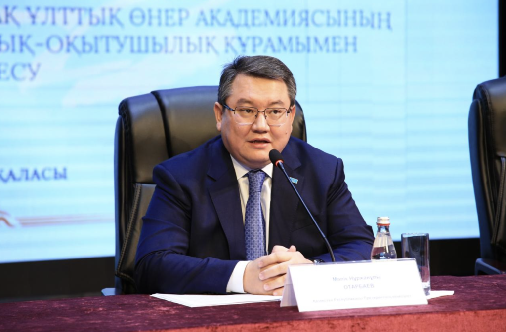 Темірбек Жүргенов атындағы Қазақ ұлттық өнер академиясында Қазақстан Республикасы Президентінің кеңесшісі Мәлік Отарбаевтың қатысуымен кездесу өтті. Жиында Мемлекет басшысы Қасым-Жомарт Тоқаевтың «Жасанды интеллект дәуіріндегі Қазақстан: өзекті мәселелер және оны түбегейлі цифрлық өзгерістер арқылы шешу» тақырыбындағы халыққа Жолдауында жүктелген міндеттерді мәдениет саласында жүзеге асыру мәселелерін талқылады. Академия ректоры Арман Жүдебаев төрағалық еткен басқосуға оқу ордасының оқытушылары мен студенттері қатысты. Қазіргі таңда атқарылып жатқан жұмыстар мен цифрлық саланы дамыту бағытындағы жоспарлар туралы сөз қозғалды. Аталған жиын барша жасты әділетті Қазақстан құрудағы іске белсенді қатысуға, Жолдаудағы бастамалардың жүзеге асуына жауапкершілік алуға, өз ұсыныстарын ашық айтып, пікір алмасуға мүмкіндік берді.