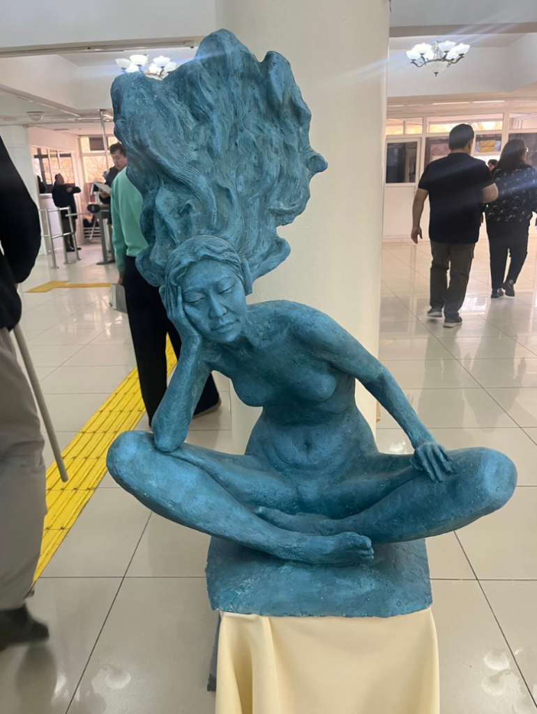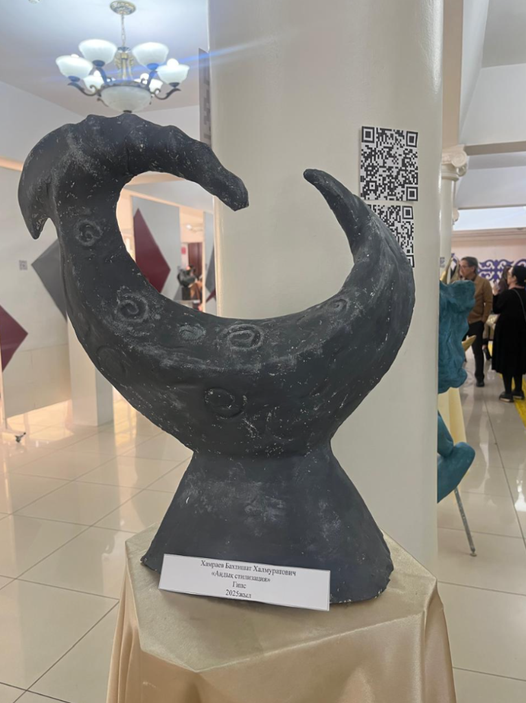 На выставке были представлены работы мастеров, внесших значительный вклад в становление профессионального казахского скульптурного искусства – Ескена Сергебаева, скульпторов старшего поколения Малика Жунисбая, Шокана Толеша, Болата Кусаинова, а также произведения молодых авторов Рината Шыныбаева и Багдата Сарсена. Их пластические поиски и индивидуальные стилевые особенности расширили художественные горизонты экспозиции. Кроме того, творческие работы студентов, обучающихся по направлению «Скульптура», дополнили выставку и продемонстрировали профессиональный потенциал молодых авторов. В рамках мероприятия студенты 4 курса специальности Искусствоведение провели искусствоведческий анализ представленных скульптур, рассмотрев их композиционные решения и художественные особенности. В целом выставка стала значимым культурным событием, наглядно показавшим различные аспекты осмысления времени и пространства через форму, и подчеркнула преемственность традиций и современных направлений отечественного скульптурного искусства.