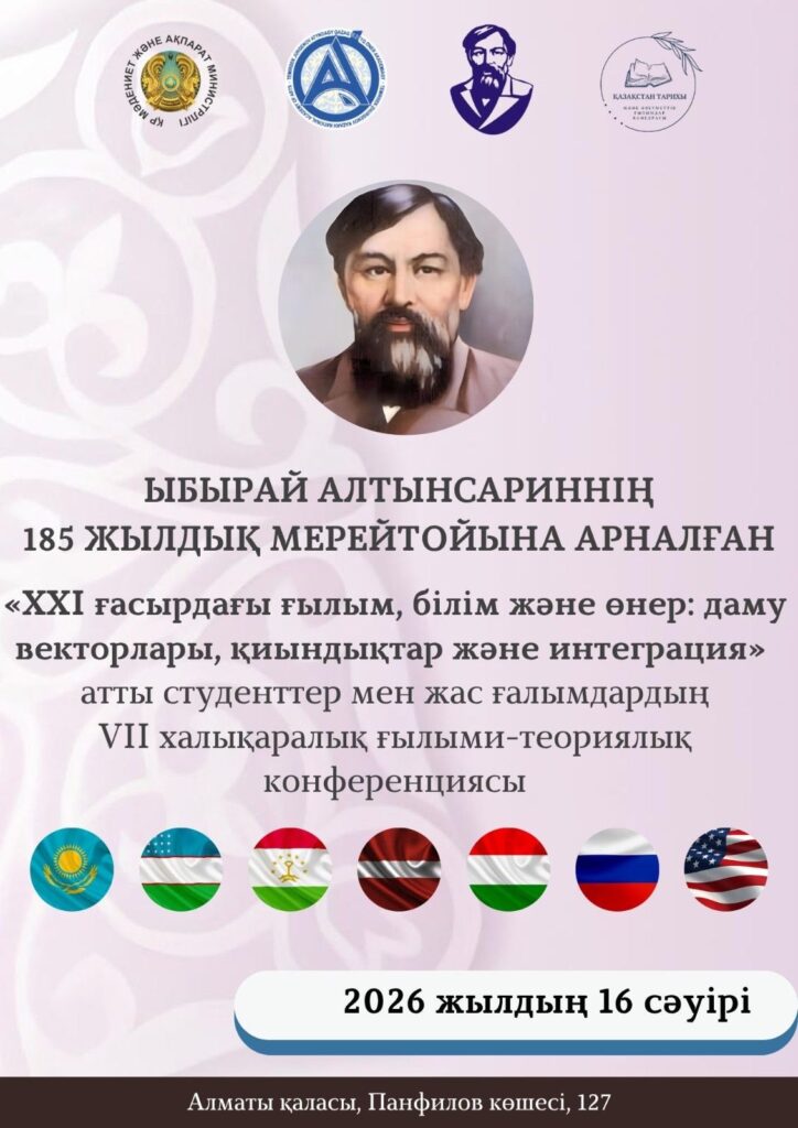 VII Международная научно-теоретическая конференция состоится 16 апреля 2026 г. в 10.00часовв Кинозале КазНАИ имени Темирбека Жургенова по адресу: г.Алматы, ул.Панфилова, 127.